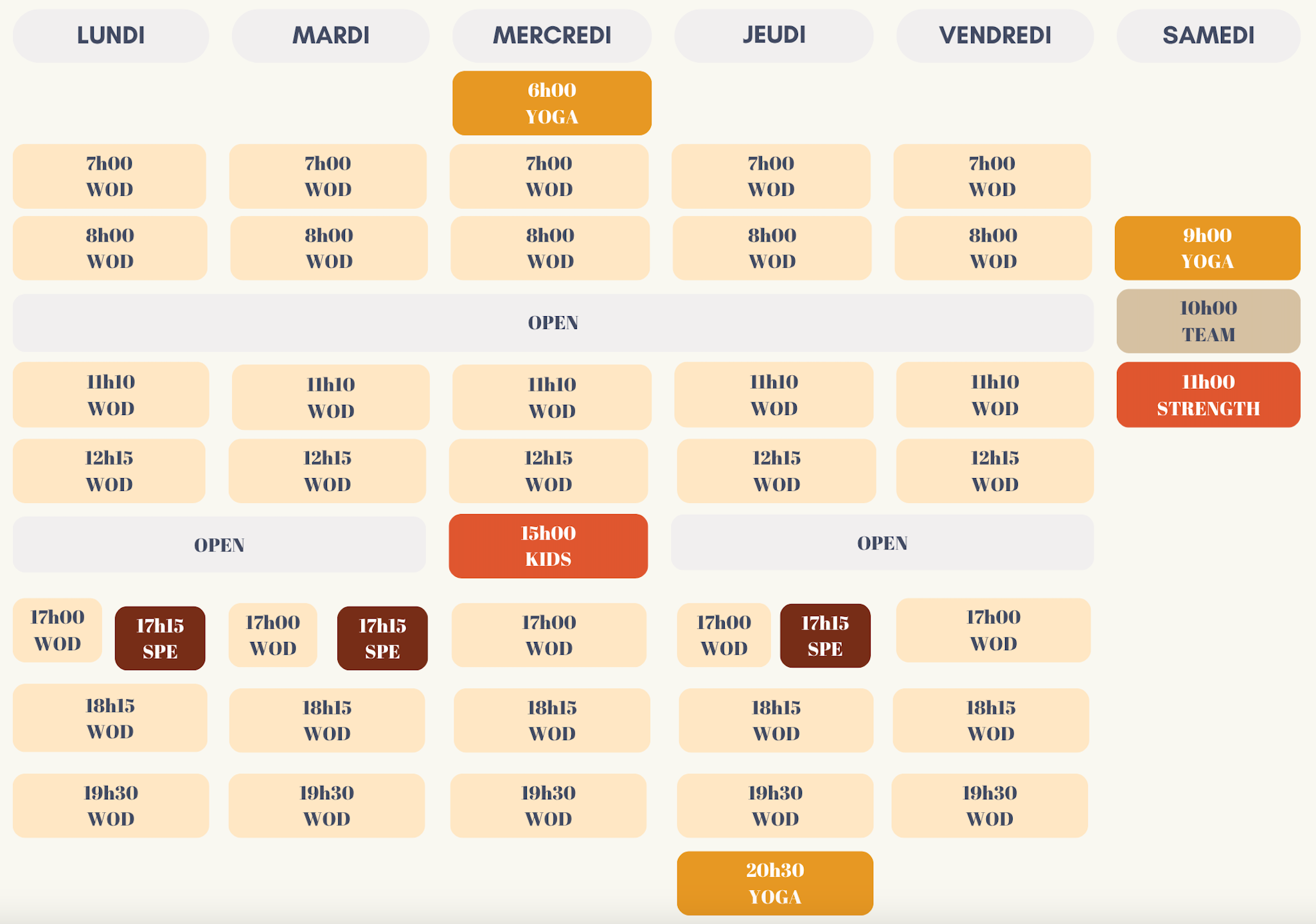 – Le planning des cours –